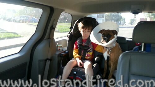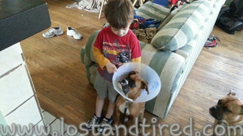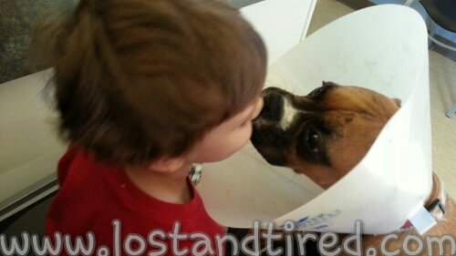 Bella finally has made a full recovery from her surgery, almost 2 weeks ago. Her stitches were removed this morning and Emmett was right there making sure his best friend was well cared for.