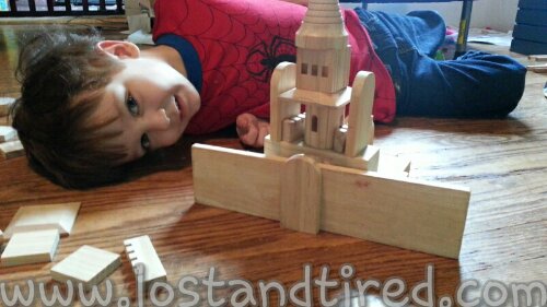 Yesterday, before everything was downhill, Emmett built this really cool castle out of blocks.