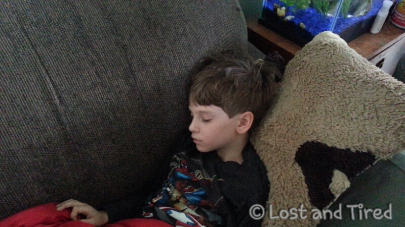 Clearly Elliott will be kept home from school on Monday.. Lizze and I think this is either a sinus infection or a head cold.