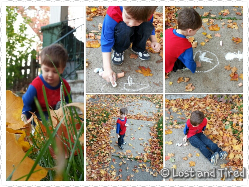 I was spending some time with Mr. Emmett John this morning. He choose to play with sidewalk chalk outside.