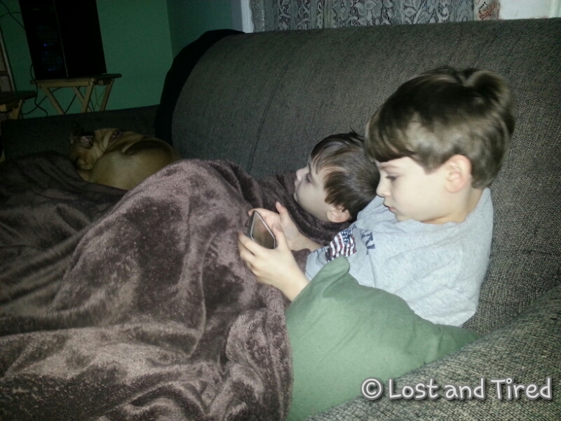 I brought the boys downstairs so that Lizze could sleep. She does that for me all the time and I wanted to return the favor.