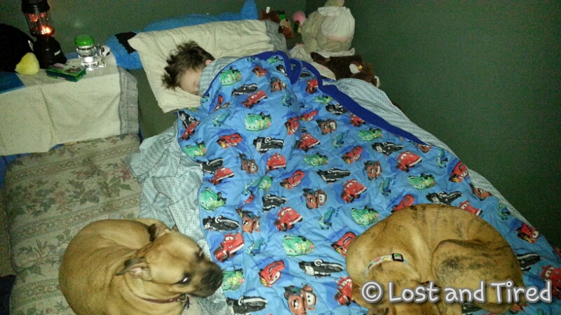 I put Emmett to bed last night and I had had to wake through the pile of canines to get there. Emmett has a very unique and special bond with both Maggie and Bella.
