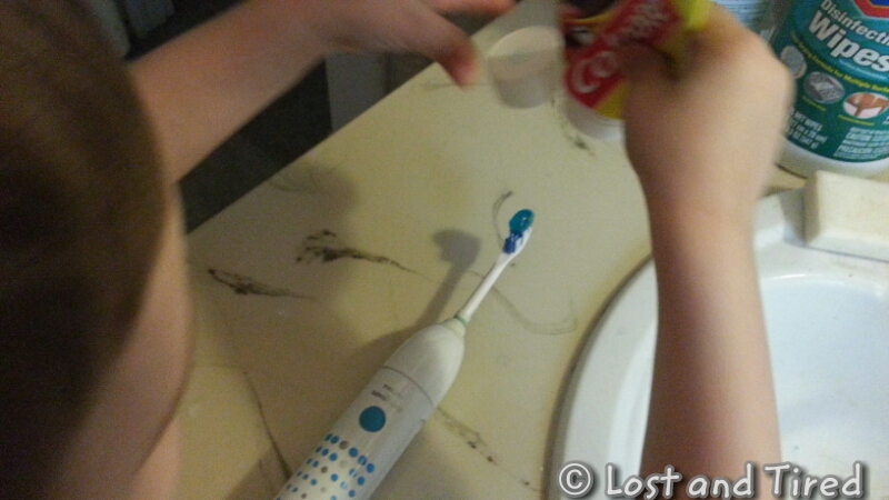 Even so, we try to find a balance between us helping him and him doing things independently. In the pictures below, I was told, by Emmett, that he wanted to setup his toothbrush, all by himself. I was happy to oblige.