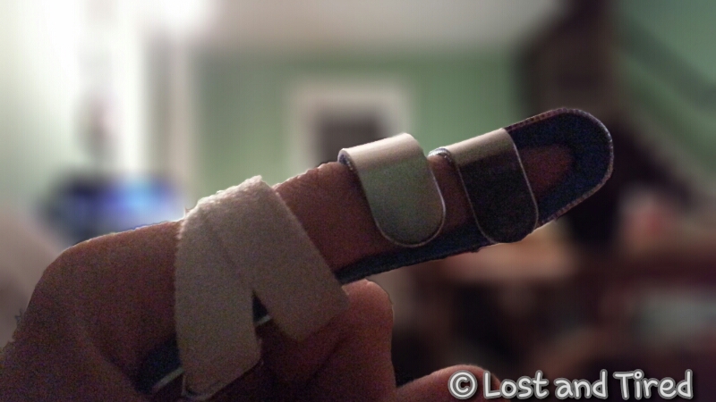 Lizze has been pushing me to go get it looked at but in my truly stubborn fashion, I haven't. I did however, finally go out and get a splint. It only hurts when I bend it or bump it or try to use it. The splint has been helping and I figured I would just give it some time to heal and remain immobilized.