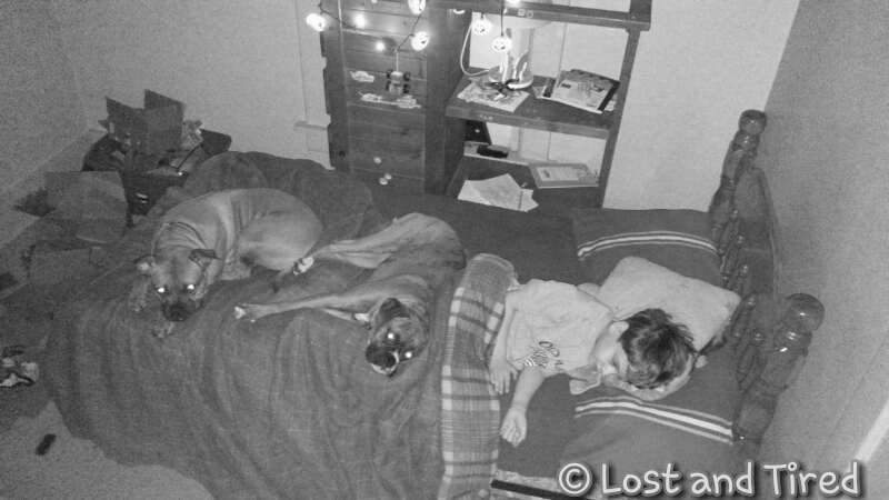 After a rather rough day, Elliott is sleeping peacefully. He has Bella and Maggie keeping watch over him.