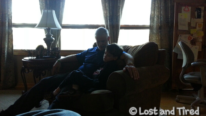 This is my Dad trying to comfort Elliott and get him to eat something.