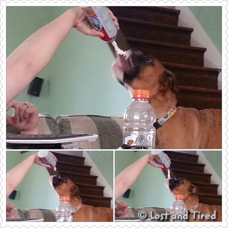 How do you know when you've lost your mind? Well, in the *Lost and Tired* family, it's when you reach the point that you find amusement in watching your dog catch whipped cream out of the air, as you shoot it from the can.