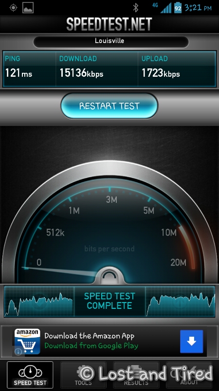 I wanted to share a screen shot of my data speeds today. Since switching to Tmobile, I haven't found a single dead area in my local travels.