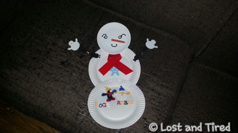 Elliott's homework assignment for this week was to create a snowman from things around the house.
