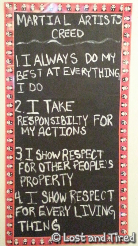 Below is a picture of the Martial Arts Creed. I think it pretty much covers all the bases. If he stays focused on that, we should do pretty well, hopefully anyway.