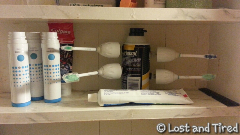 Anyway, we had a problem because we were always removing the brush heads because we shared the bases.