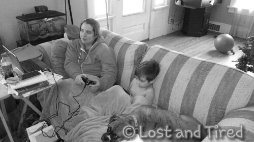 Today, on a day that was particularly bad for her, pain-wise, she was able to engage with Emmett by playing a game with him on the xbox 360. It was fun for both of them and it was a pain free experience.