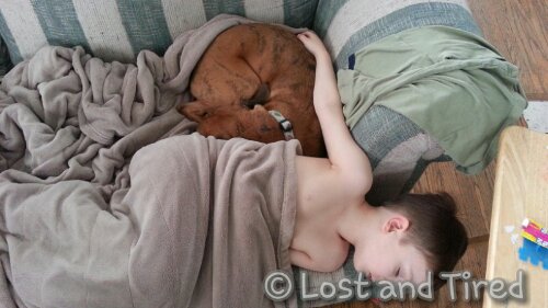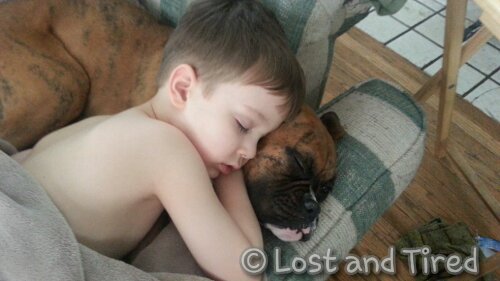 As Emmett becomes more independent, they are as *attached at the hip *as they had been. Having said that, scenes like this are very common in the Lost and Tired household.