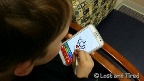 As you can see, Emmett is using that stylus, called the *S-Pen*, to trace his letters and color a picture.