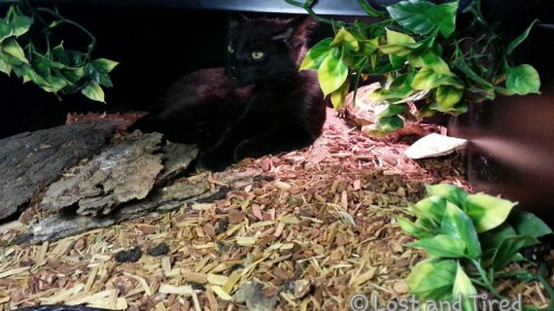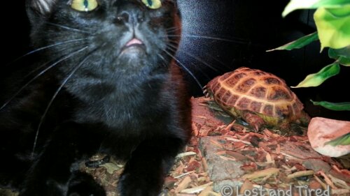 I used to joke around with Lizze that I couldn't believe the cats haven't investigated the turtle table.