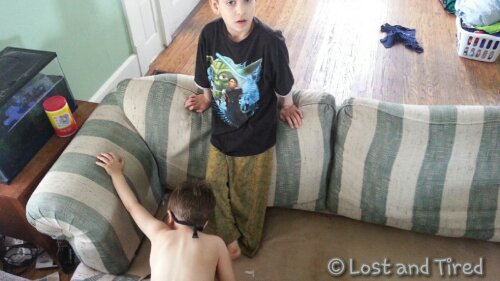 The boys have been begging me to clean out the couches. They love to pull off the cushions and dig *for treasure. *
