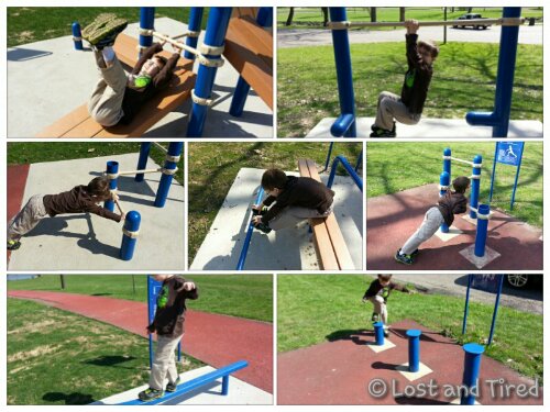Emmett had to stop and try out all the exercise equipment, so our 1.77 mile walk, took us about an hour. He did really awesome.