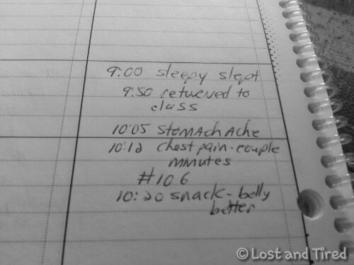 Anyway, this is a snapshot of what went on Wednesday morning. Gavin's issues tend to revolve around frustration, sleepiness, chest pain or stomach cramps.