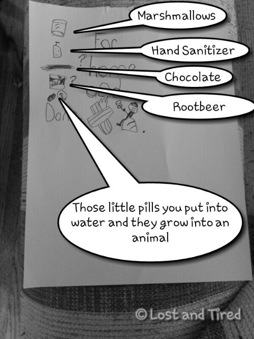He didn't know how to spell all the words so he drew pictures to represent the items that *he* wanted me to get.