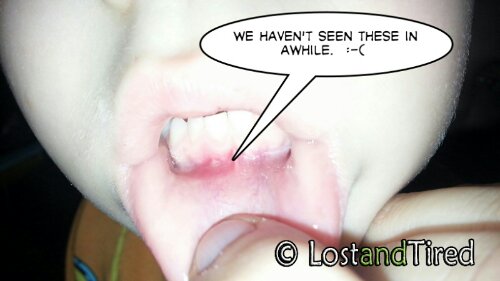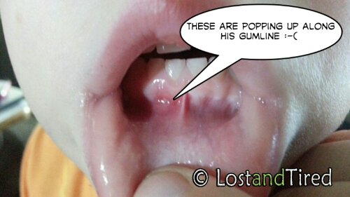 The sores are officially popping up now. This time however, they are showing up along his gumline and they are very, very painful.