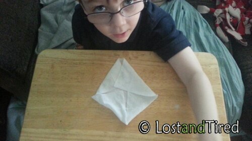 Today he decided to mix his love of creating things with the newly found independence of cleaning his own face. I bring you *diamond shaped wipes. *:-)