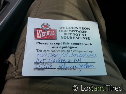 Now we're just sitting here waiting for Lizze to come out of her appointment. Hopefully the peace offering of Wendy's will help Emmett help him service the trip.