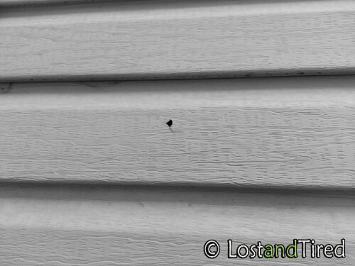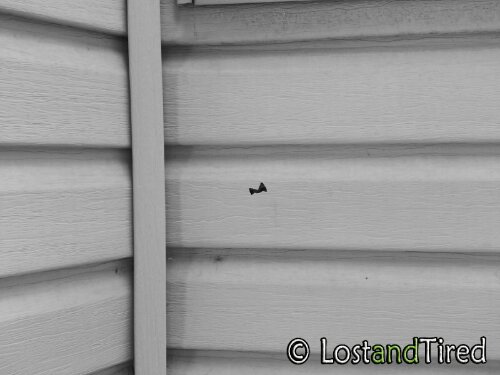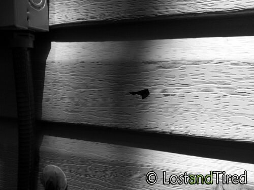 However, I was outside with Emmett this afternoon and I found three holes in our siding, all within a very short distance of a window.