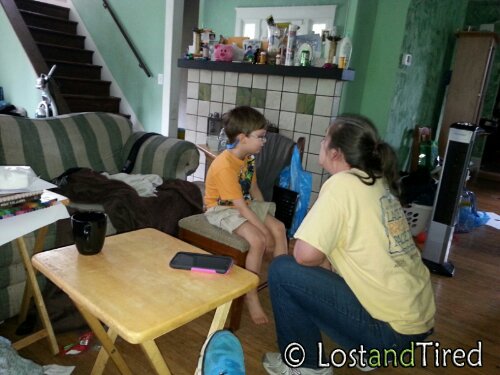 Emmett is having a very sensory sensitive day. We're trying to get out the door to go to my parents house and Emmett can't get his shoes or socks on.