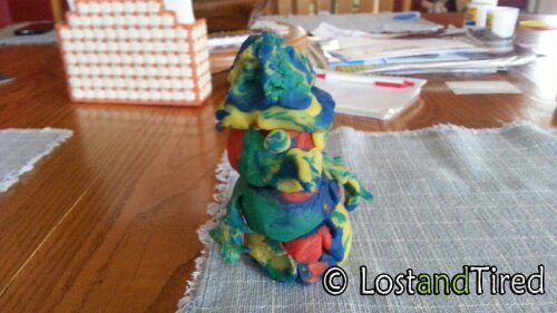 While at my parents house yesterday, Emmett created this bright colorful snowman out of Play-Doh. :-)