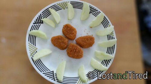 Chicken nuggets. Chicken nuggets are greatest thing and yet the bane of my existence. Emmett loves chicken nuggets but only Tysons and only from the *orange bag*. If the label's or packaging change, they will no longer taste right. I'm being totally serious.