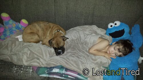 When Lizze and I were going to bed, I decided that Emmett and I would sleep on the couch because he wasn't likely to sleep well and I wanted Lizze to get some rest.