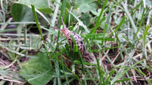 This is a picture of a Limax Maximus or *Leopard Slug**. *The Leopard Slug is nocturnal in nature and feeds mostly at night. Limax Maximus feed on dead plants, fungus and even smaller slugs.