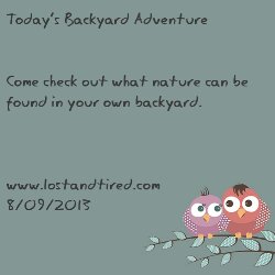 Okay, with that said, lets dip into our first *Backyard Adventure. *