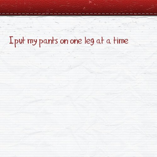 When I get up in the morning, I put my pants on one leg at a time. There are days that I have a little extra patience to go around and there are others that I barely make it through the day, literally.