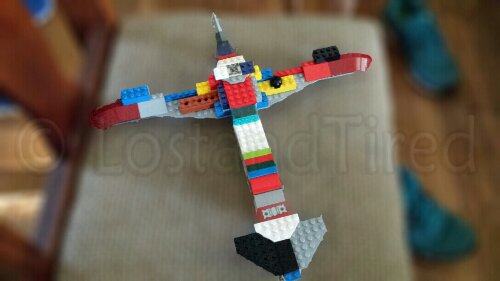 While the boys were gone today, Gavin was building with Legos. He built this spaceship but didn't say much more about it besides it has *thrusters. *