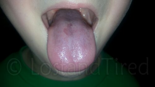 It appears that Emmett is heading into another flare. It's actually been a few weeks since the last *full-on* fever flare. He has a really large sore on the middle of his tongue.
