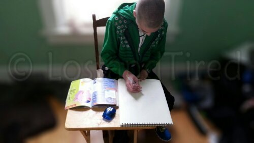 Right now he's back working on his drawings. :-)