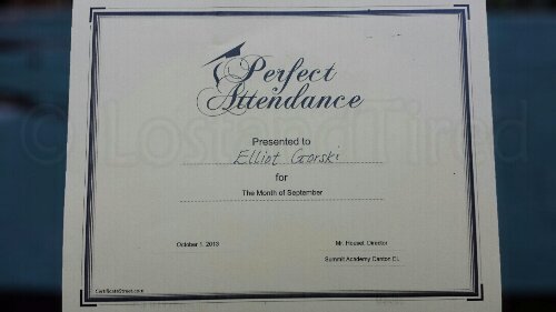 Elliott got an award the other day and while he wasn't to excited about it, we are. He got the perfect attendance award for the month of September.