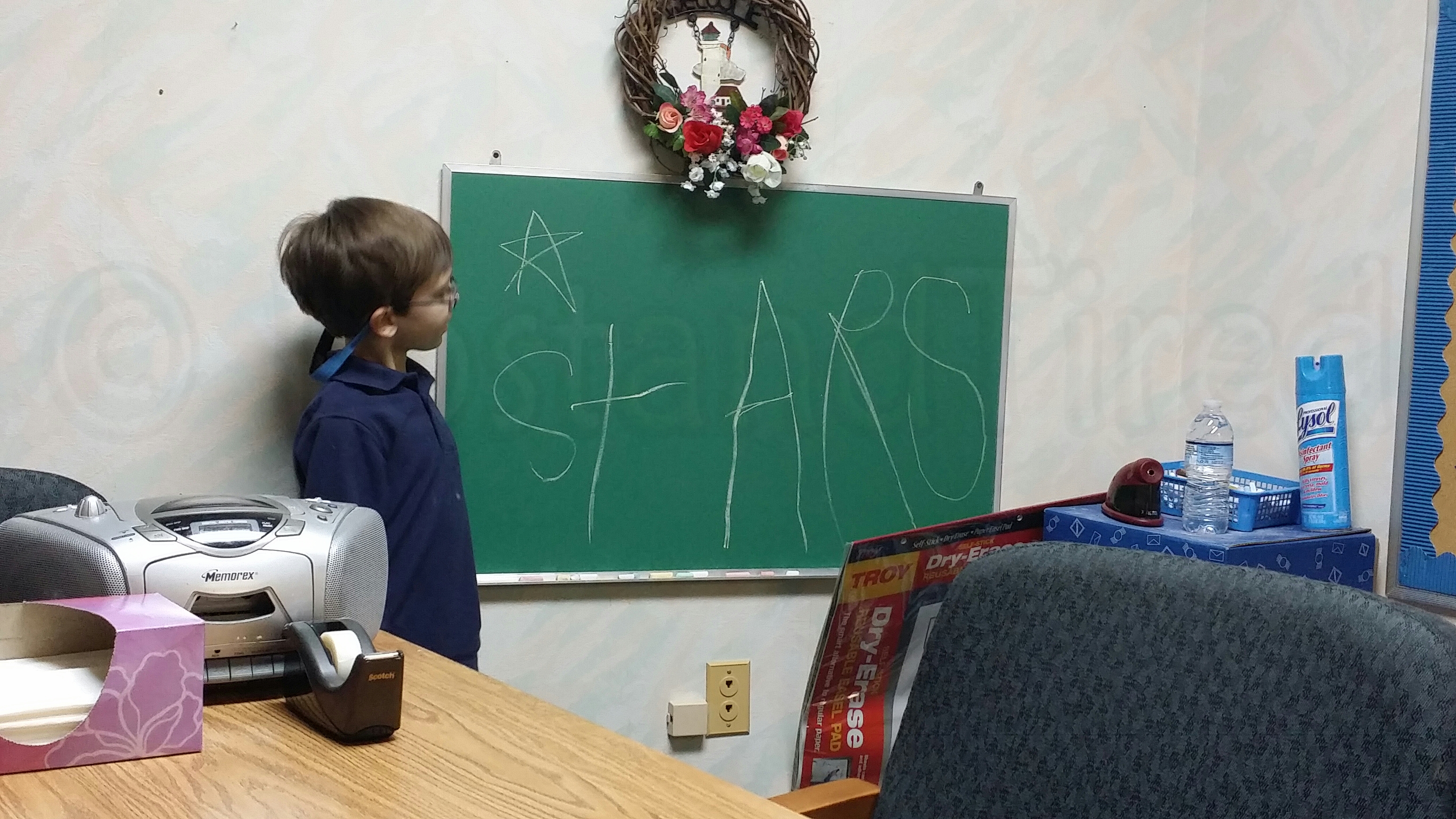 I'm pretty impressed by this because I didn't know he could write the word *star* all by himself.