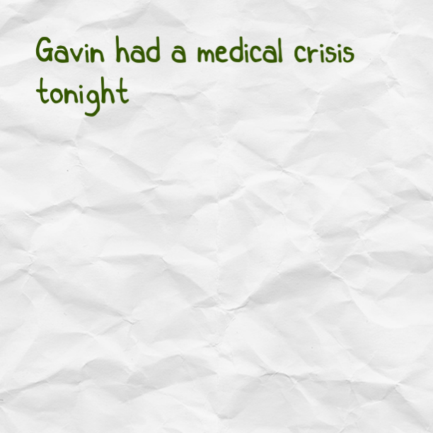 Gavin had some health problems tonight and it got a little scary. He had been asleep for several hours before he came crawling down the steps begging for help.
