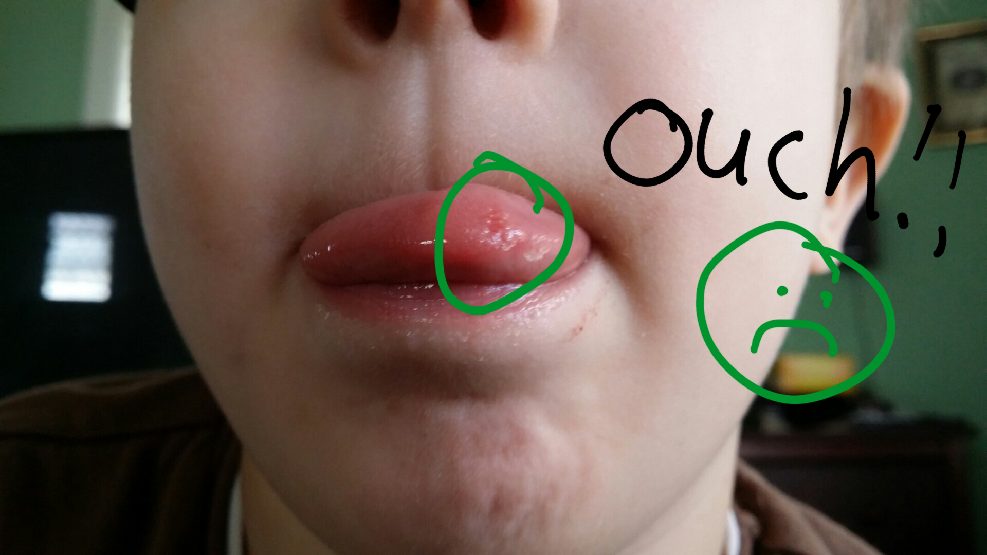 I'm not sure how this one is going to go but it's not looking good. He got a huge sore on the tip of his tongue and a bunch showing up along his gum line.