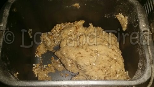 After dinner last night, Emmett and I made some oatmeal bread in the bread machine. I've never made this type of bread before but Emmett was really excited, so we went for it. I'm not sure what exactly went wrong but something definitely went wrong.