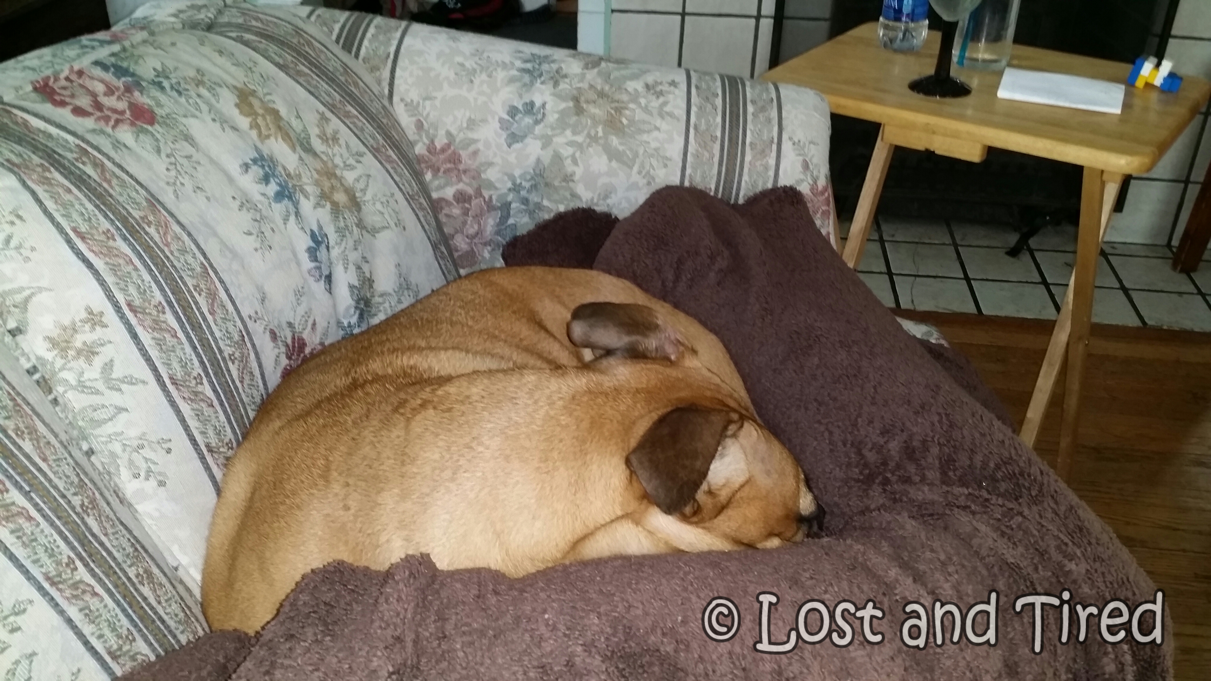 I was so stressed out and exhausted this morning, after all the meltdown and other challenges we face before school. One of the things that I did today to relax and sorta cool off a bit, was I took a nap on the couch with Maggie.