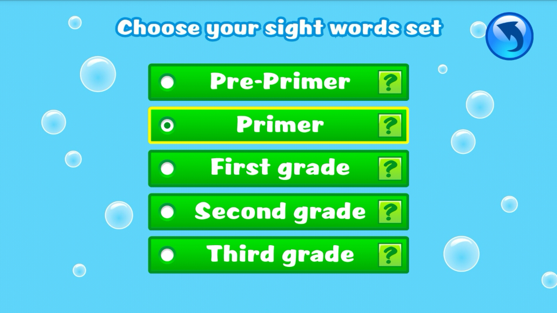 What this app does is help your child, with or without Autism, to learn and practice their sight words. There are multiple grade levels that can be selected to adjust the degree of challenge.