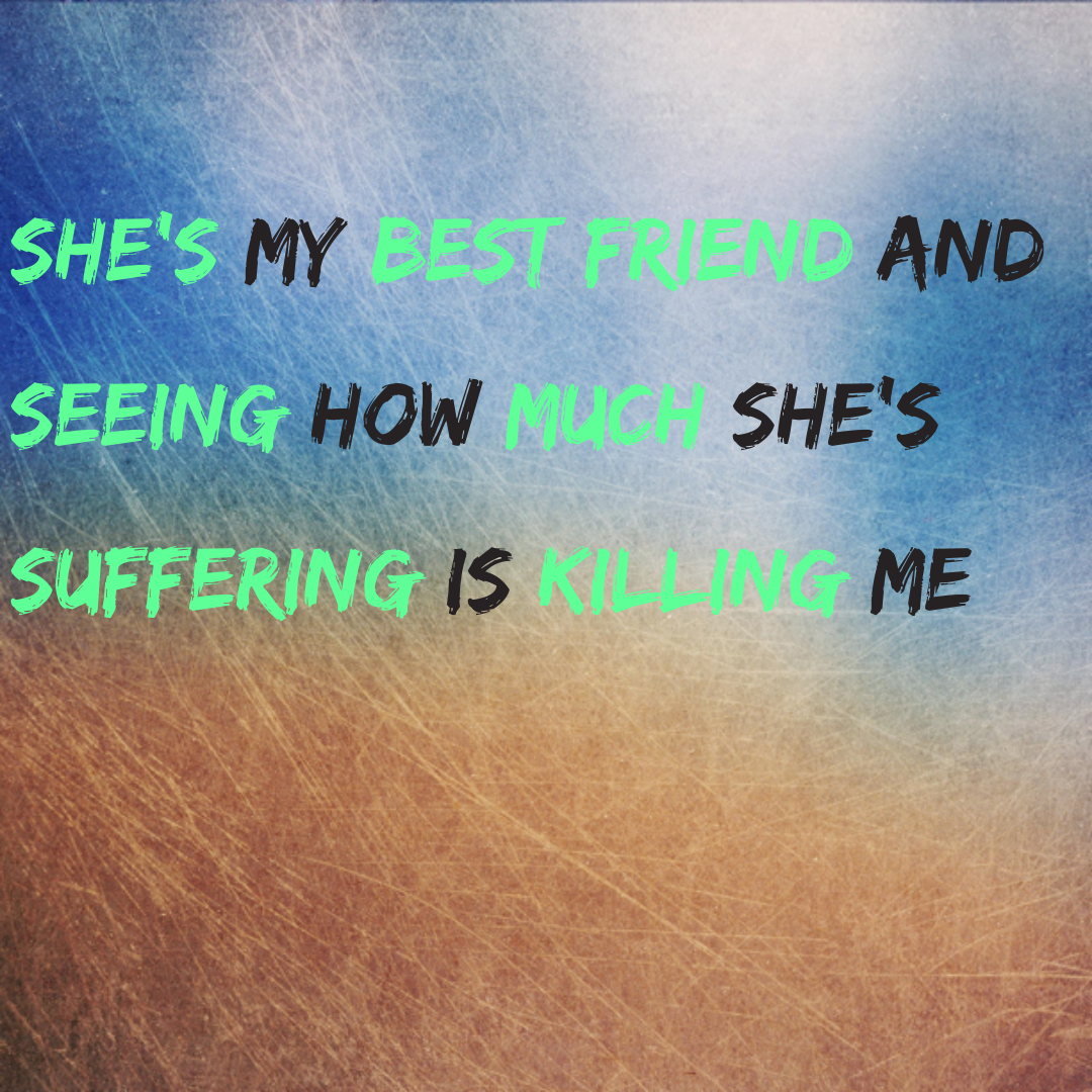 One of the most difficult things I've ever had to do in my entire life, is watch my wife go through the things she's going through. She's my best friend and seeing how much she's suffering is killing me.