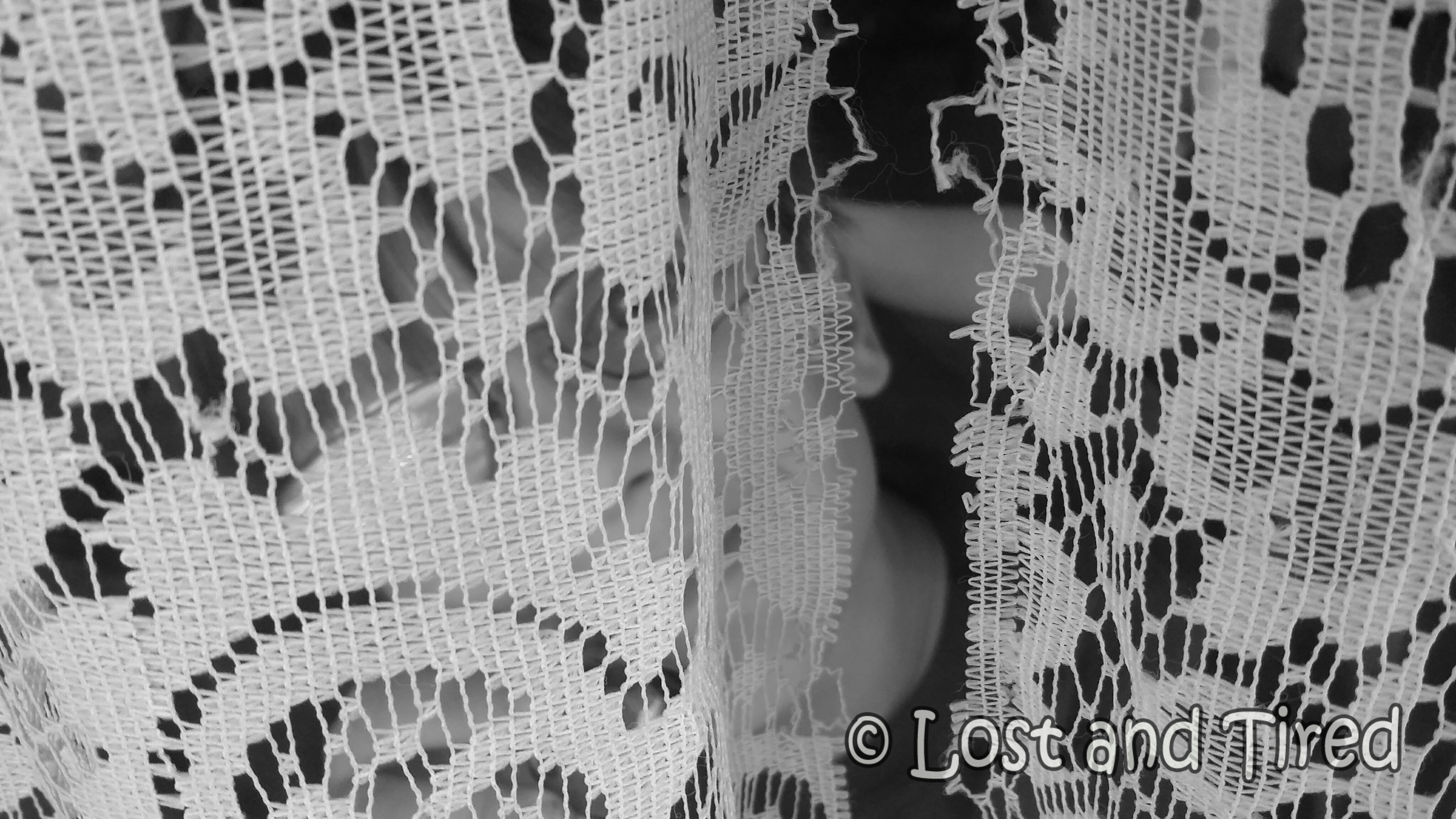 In this picture, I'm on the outside of the house and I could see Emmett's adorable, smiling face, through the tattered curtains of our picture frame window...