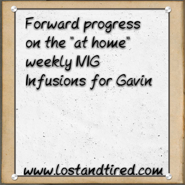 I left a message today with Gavin's Immunologist's office because we still haven't heard about Gavin's transition to *at home*, weekly IVIG Infusion.