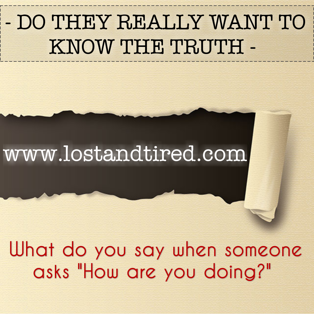 I like to think that people mean well. If they ask how I'm doing, I feel guilty telling them the truth because it's pretty heavy and not easy to deal with. Other times I know that they simply will not understand and being honest will lead to headaches that I can avoid by simply saying, "I'm fine."
