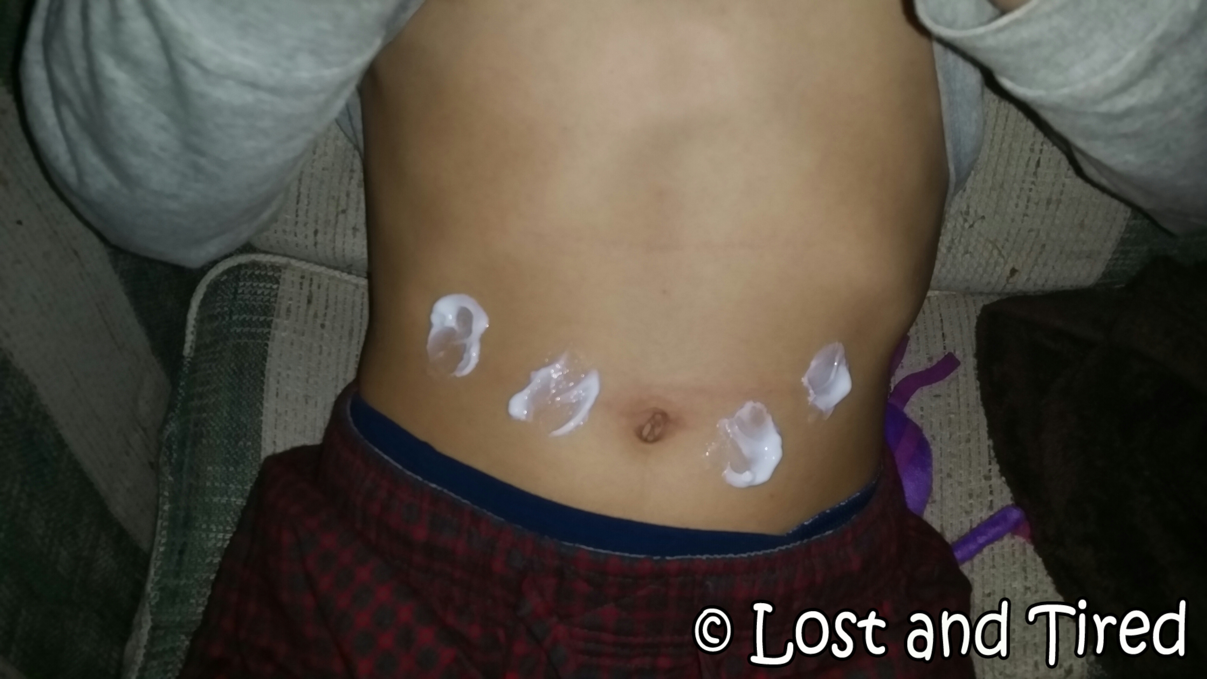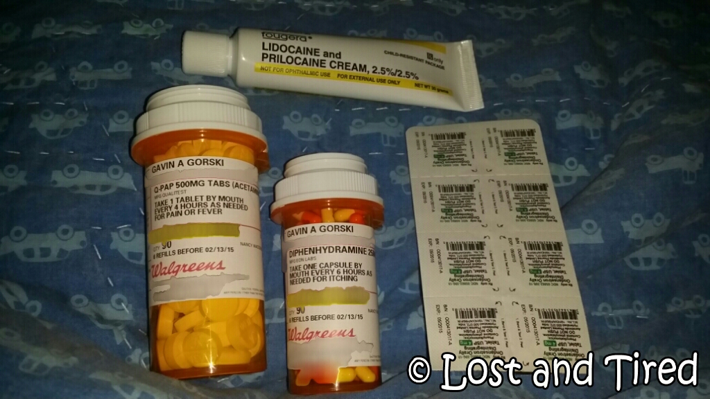 We start off by numbing the 3 injection sites with Lidocaine cream. This helps to make the process as painless as possible for Gavin. I actually do 4 sites in case one doesn't work out.