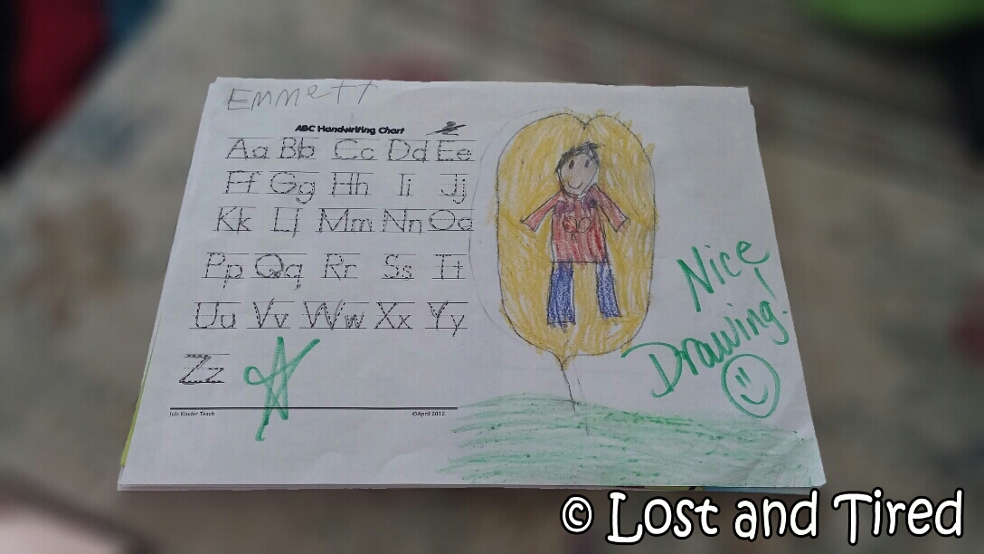 Emmett brought this home from school today and he did really well. I'm not sure what inspired the picture but he's taken it upon himself to decorate the worksheet.... :-)